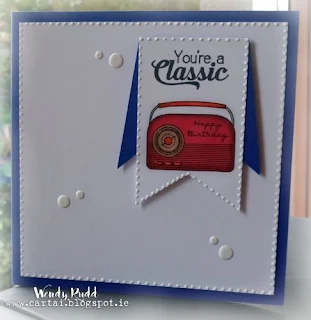Embellished with 3d enamel dots, satin ribbon bow & a polka dot embossing folder.